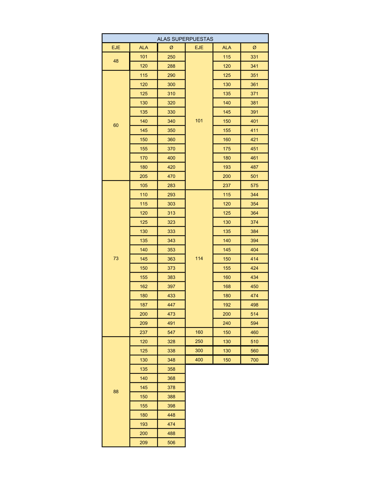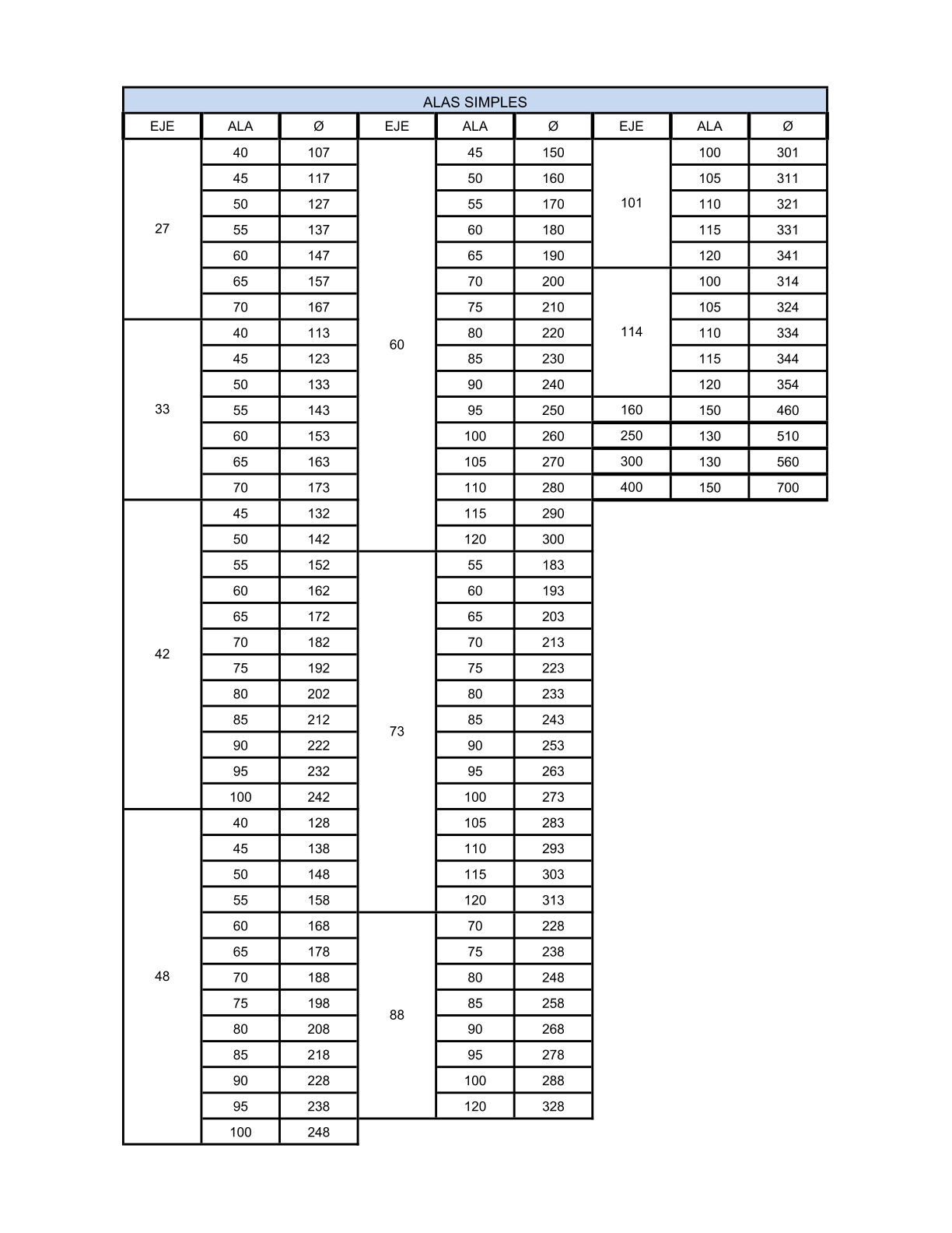 Estándar (paso cuadrado) o bajo plano con medidas especiales según las necesidades del cliente.